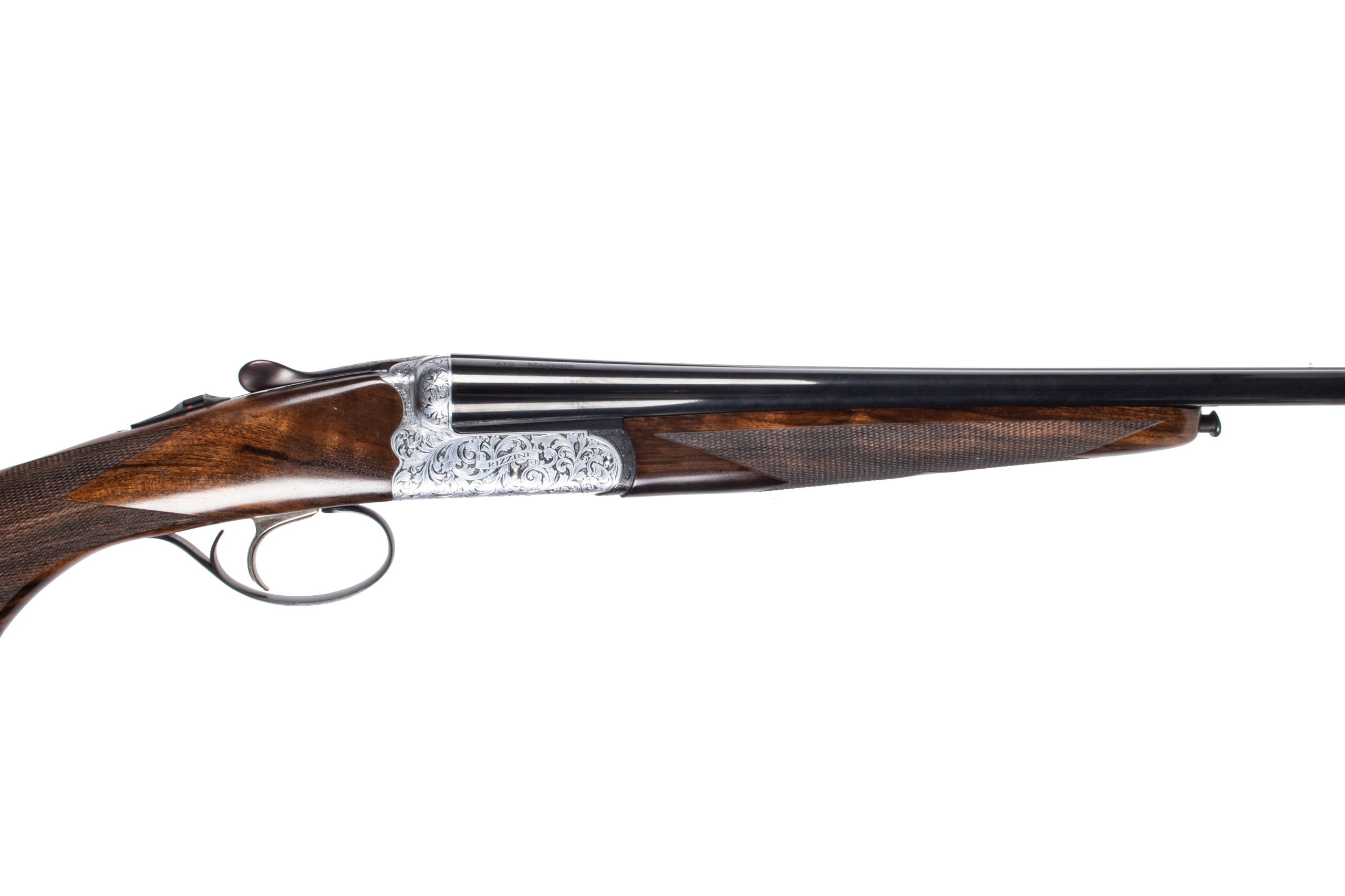 Rizzini BR 550 Round Body chambered 410 gauge with 29 inch barrels, bright & shiny bores, screw-in IM/M chokes, 3 extra chokes and a LOP of 14 1/2 inches. The NRA grading condition for this USED firearm is Excellent.