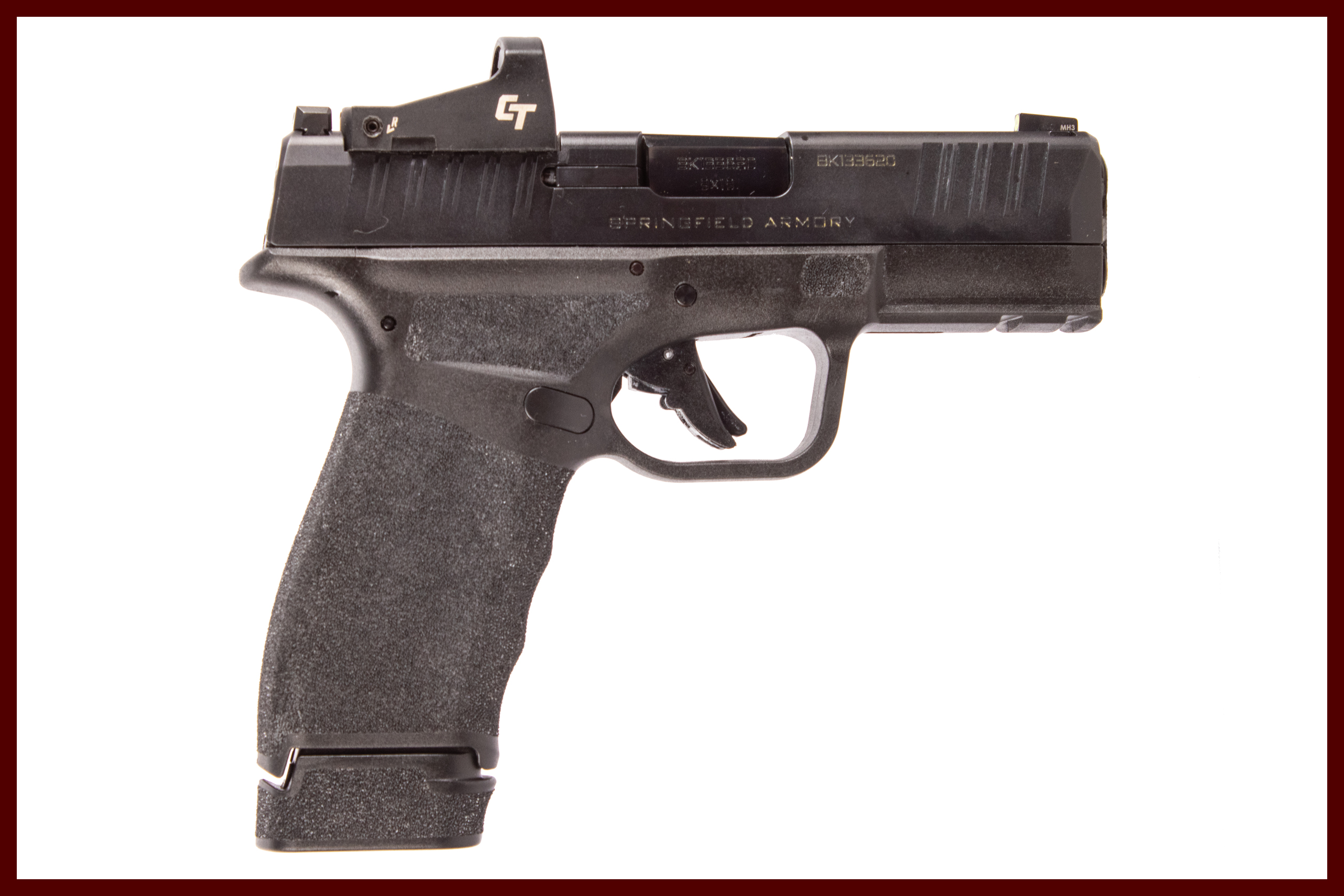 Springfield Armory Hellcat Pro Made by HS Produkt Karlovac chambered in 9 Millimeter Parabellum with a 3¾ inch barrel, mirror-shine bore with immaculate rifling in excellent working order. This rifle comes mounted with a Crimson Trace red dot optic and included a soft case and 5 extra magazines. The NRA grading condition for this USED firearm is Excellent.